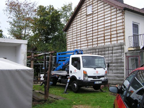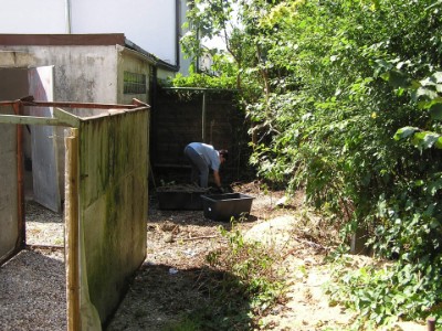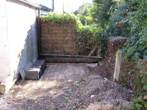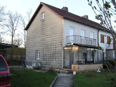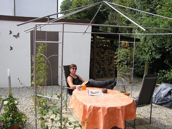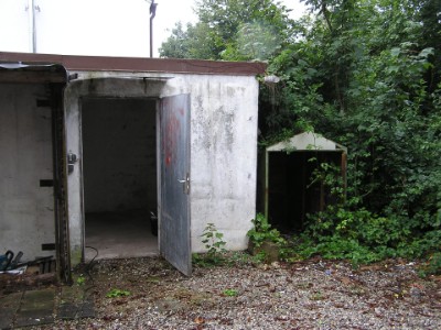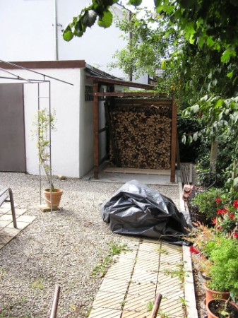 Holzunterstand hinter der Garage